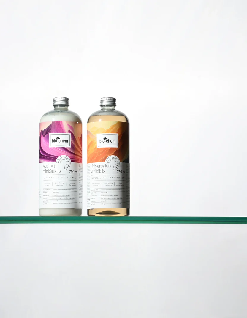 Rinkinys: parfumuotas skalbiklis ir minkštiklis UNIQUE SCENT