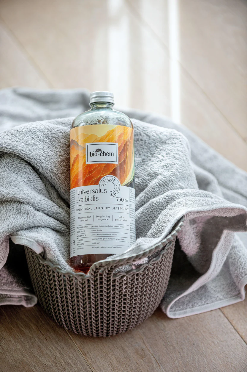 Išskirtinio kvapo universalus skalbiklis „UNIQUE Scent” su fermentais, efektyviai pašalina sunkiai įveikiamas dėmes, saugo audinių spalvas bei audiniams suteikia ilgai išliekantį malonų kvapą.